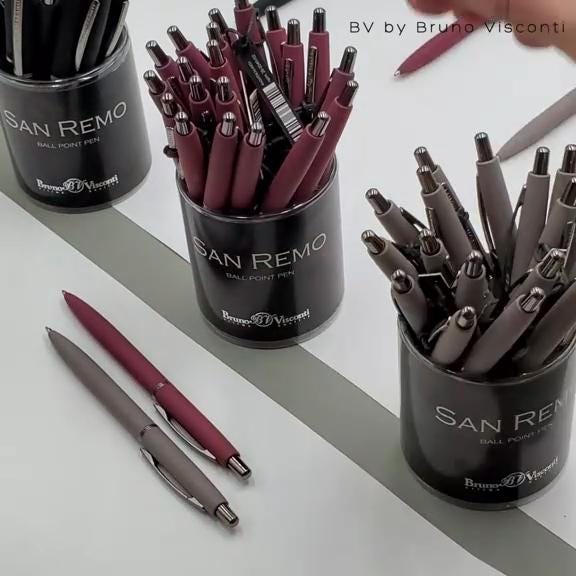 San Remo by Bruno Visconti. Your choice of black or grey/gray in a meticulously crafted heavy weight steel pen with a skin soft and smooth finish.